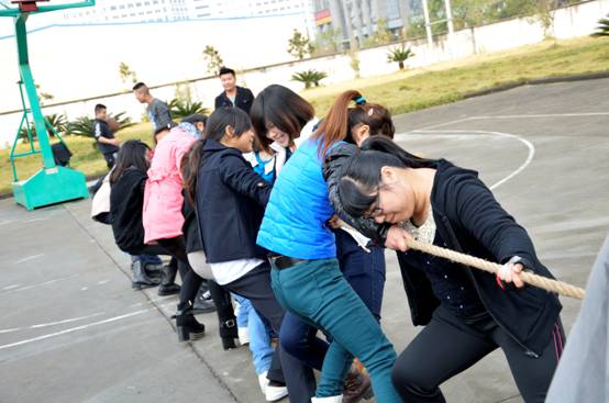 在兩隊隊長對隊員進行一些拔河要點講解后,比賽開始。別看技術部眾位女同事平時都是“蝸居”在辦公室,該使的力氣也不小。隨著旁邊的“加油”聲逐漸加大,大家齊心協(xié)力,重心下移,后倒,終于把象征中心的錦帶拉到了我方范圍。