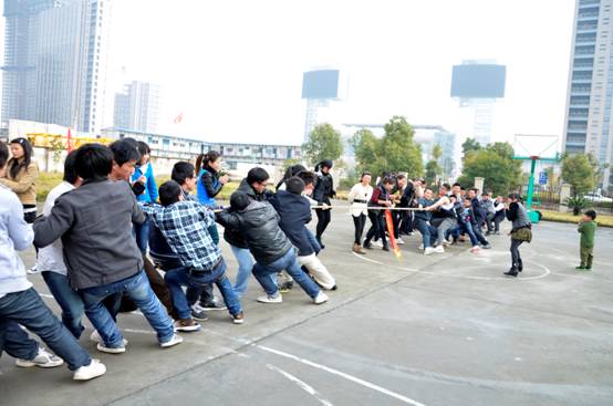 和女子組不同,男子組的拔河隊伍是商務部同人才網組成的隊伍PK技術部和客服部隊伍。由于人數(shù)空缺,CEO陳偉峰臨時加入了商務部人才網的隊伍,湊成了13:13的格局。第一局,兩支隊伍就展開了激烈的角逐,然以技術部和客服部隊伍勝出。第二局,當兩支隊伍勢均力敵,不分上下之際,只聽商務部門和人才網在CEO陳偉峰的帶領下,喊起了“一二三”的口號,“不知道為什么,剛開始感覺兩隊實力都差不多,但是當他們喊出口號的時候,瞬間就覺得商務部和人才網那邊強大了。”在一旁的啦啦隊說道。毫無疑問,這一局商務部和人才網隊伍獲勝。自此,1:1平手。隨后,進行了一場加分賽,商務部人才網勝出。