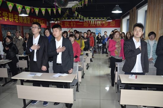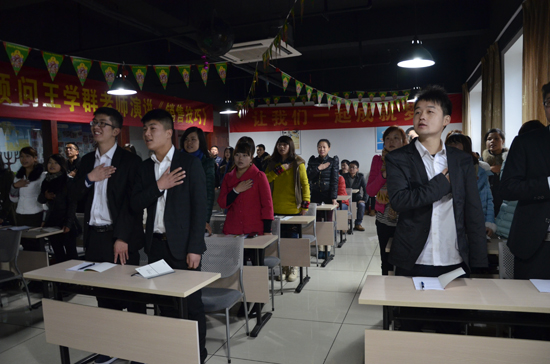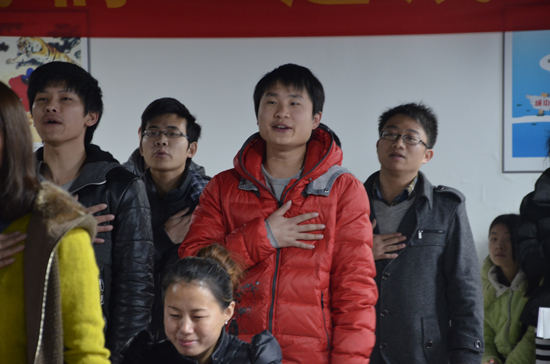 “我們第一要感謝我們的祖國,沒有繁榮安定的社會,我們無法穩(wěn)定發(fā)展。”為了響應感恩,全員唱起了中華人民共和國國歌——《義勇軍進行曲》。